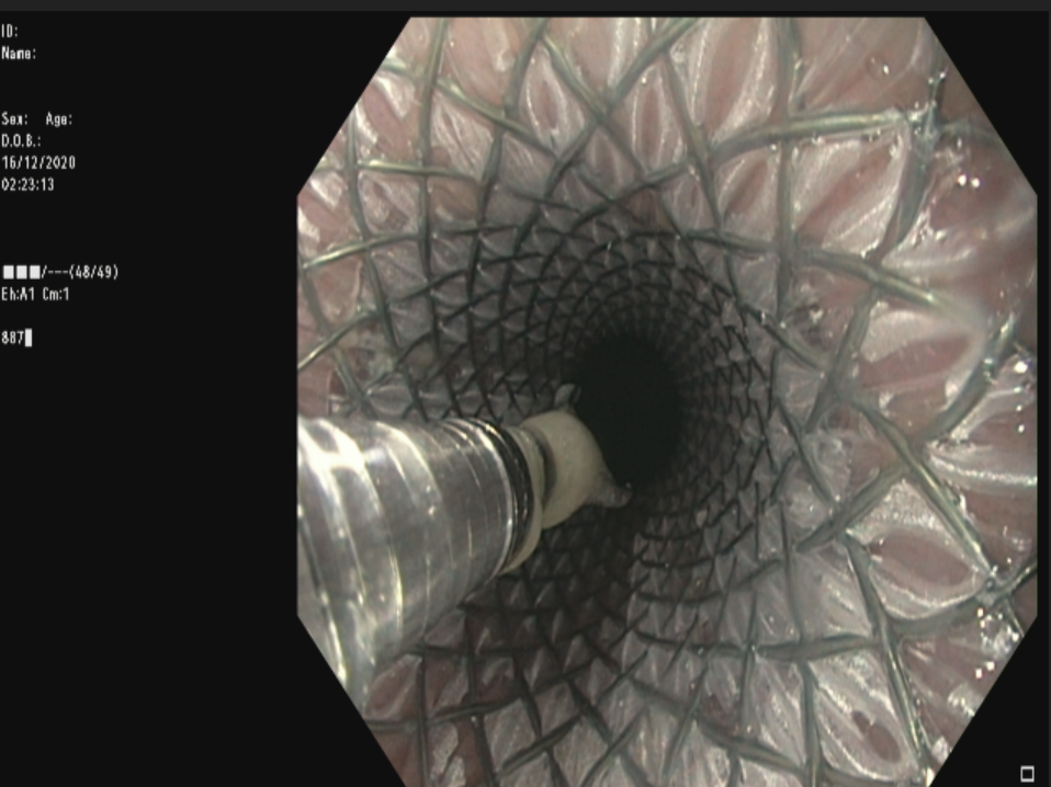 Esophageal cancer causes blockage of food pipe causing difficulty to swallow and esophagectomy is the only option promises to cure it. During surgery the diseased esophagus is removed and replaced with stomach as a new food pipe. Replacing what nature has given us is not a commodity human possess but as said “medicine is conceived in sympathy and born out of necessity” and stomach is the most suitable replacement for esophagus with some inherent shortcomings like development of stenosis which leads to difficulty in swallowing. Since these problems arise within 2 to 3 months of surgery, late presentation like this arose suspicion of cancer recurrence, hence a PETCT scan was performed to exclude it. Once the disease recurrence was excluded next task was to restore the “right to eat “. In view of previous failures at dilatation, adding another dilatation was bound to fail and would have demoralized the patient. After discussing it with the Gastroenterologist, a metallic stent was placed across the stenosis as a day care UGI endoscopic procedure. Oral diet was resumed immediately which restored patient’s sense of belonging. The stent was removed after 6 weeks without the problem to return. Patient is happy, it is 3 months since then, he can eat normally.